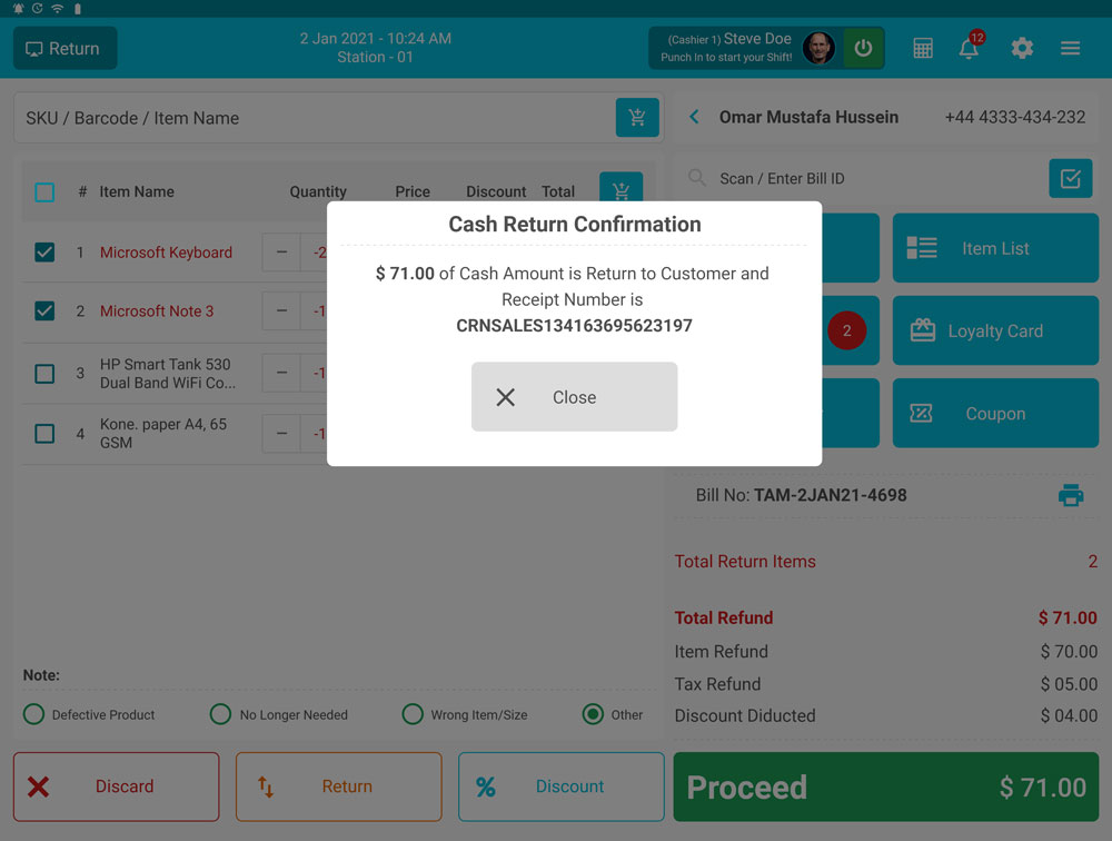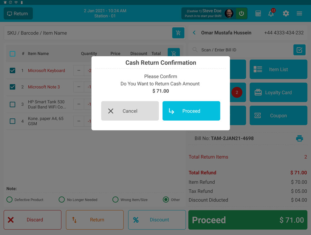 Cash Refund Screen